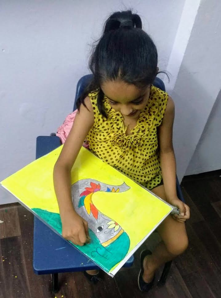 Art Classes are held twice a week. Each day the class runs for one and half hour. The medium used is oil pastels. However any medium can be used. Children bring their own material. So parents, why are you waiting. Avail this wonderful opportunity for your children. Lekhnee Academy has recently shifted in the premises of Hari Mandir at GTB Nagar, New Delhi. Take a look at our students work.